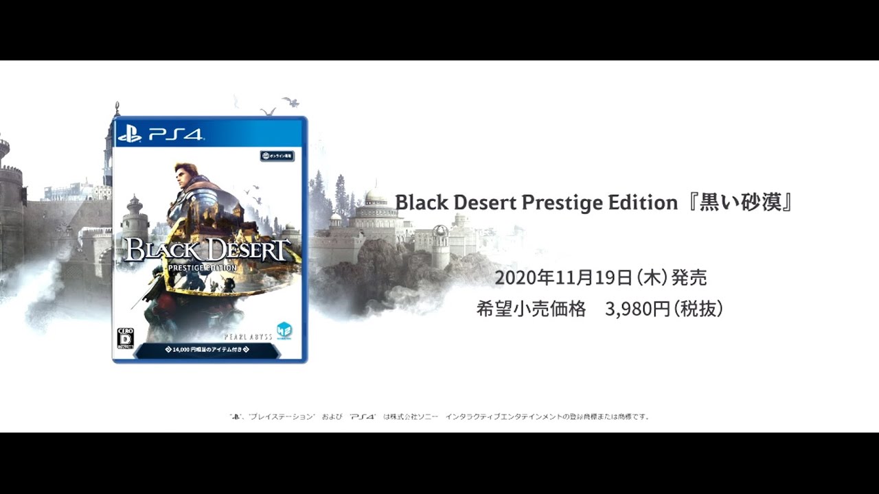 このページでは、2020年11月19日(木)発売のPS4用ソフト「Black Desert(黒い砂漠)プレステージ エディション」の商品情報や、店舗特典・封入特典などの特典情報についてまとめています!