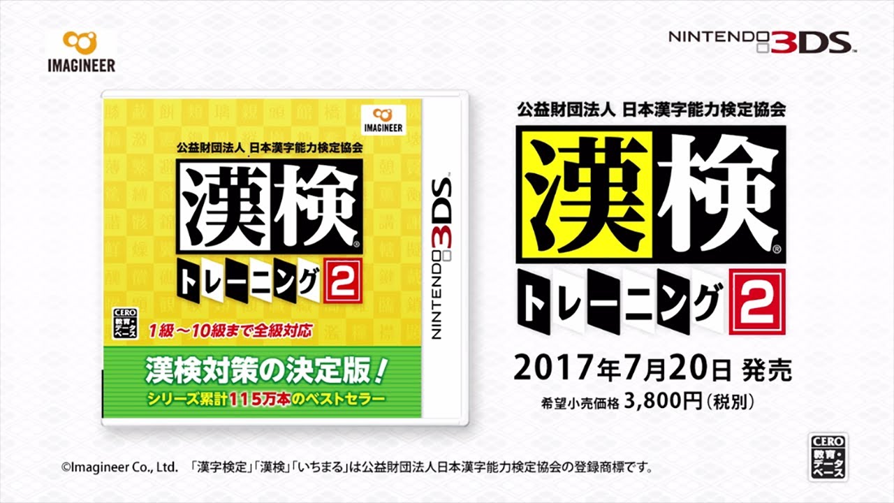 【2017年07月20日(木)】ニンテンドー3DS用ソフト「公益財団法人 日本漢字能力検定協会 漢検トレーニング2」が発売!