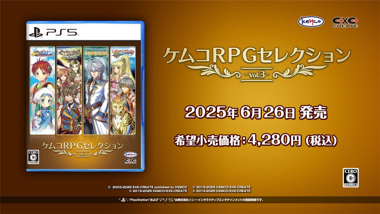 【2025年06月26日(木)】PS5用ソフト「ケムコRPGセレクション Vol.3(PS5版)」が発売!