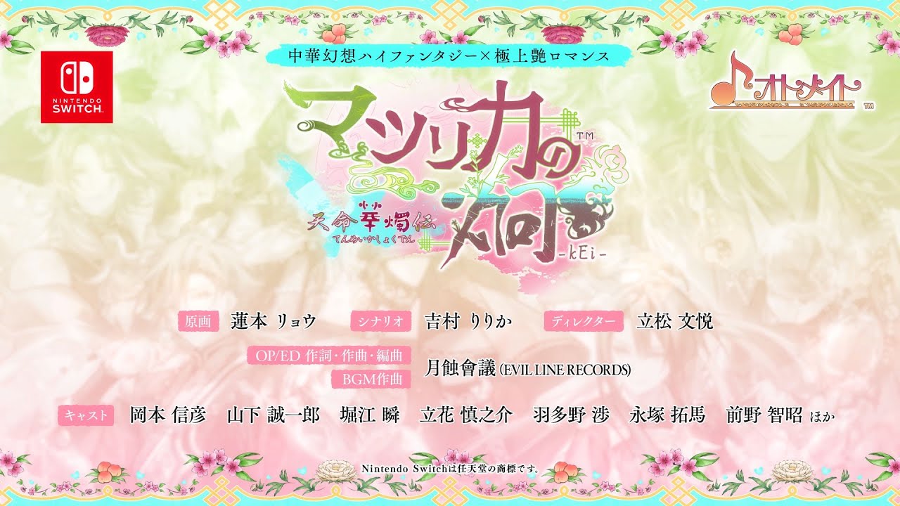 オトメイトが贈る、中華幻想ハイファンタジー×極上艶ロマンスな女性向け恋愛アドベンチャーゲーム「マツリカの炯 kEi 天命胤異伝」のファンディスクが、Nintendo Switchに登場!