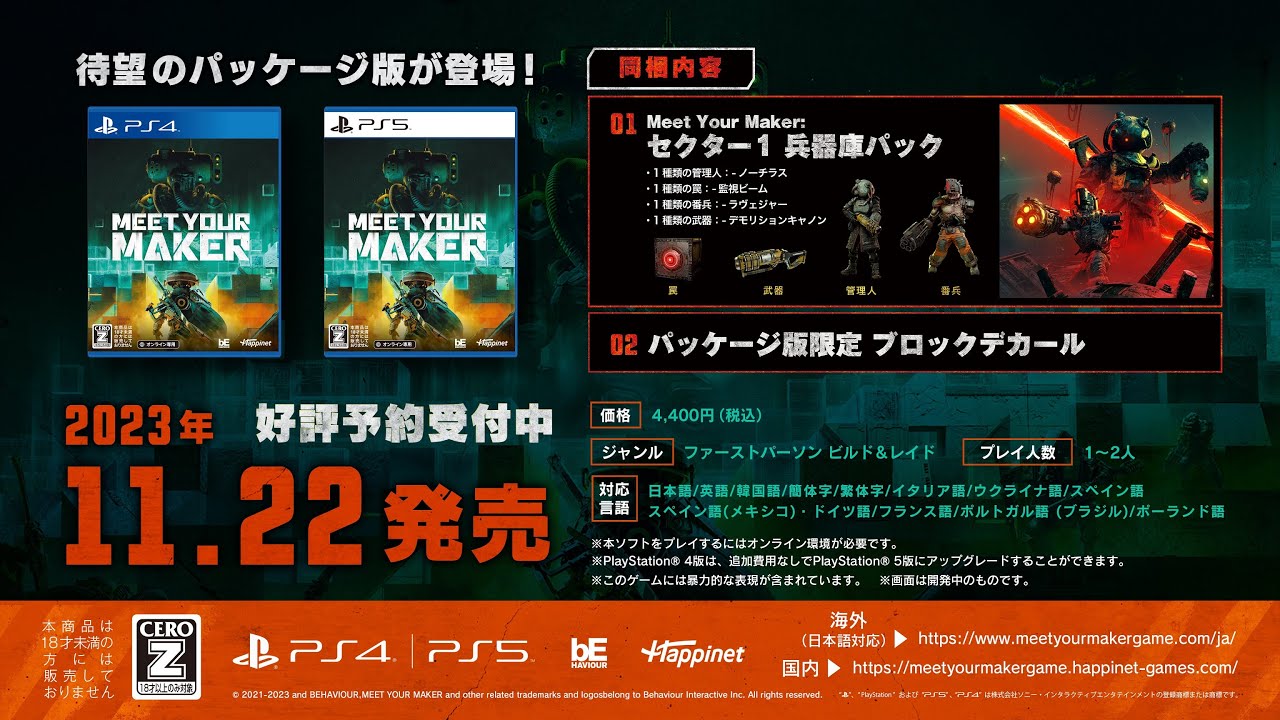 | リンク | 「Meet Your Maker(ミートユアメーカー)」公式サイト 「ハピネット GAME」日本公式X(Twitter) |