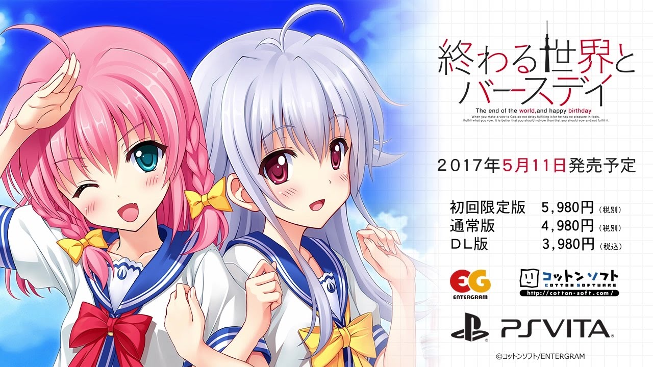 2012年07月にコットンソフトより発売された、PC用18禁アドベンチャーゲーム「終わる世界とバースデイ」が、PS Vitaに移植決定!
