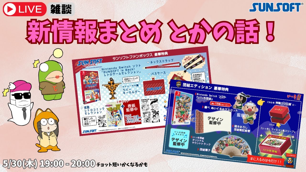Nintendo Switch用ソフト「SUNSOFT is Back! レトロゲームセレクション」は、サンソフトファンボックスと通常版の2種類が発売されます。